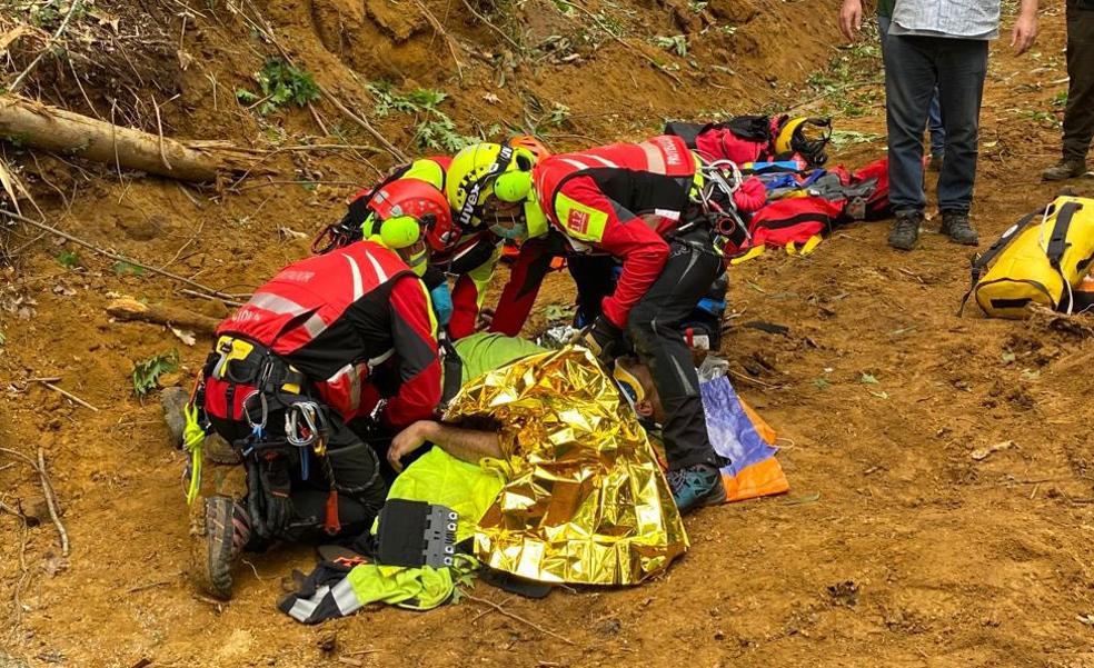 Ha sido rescatado con vida pero tiene varios politraumatismos y una fractura en la pierna y ha sido ingresado en Valdecilla